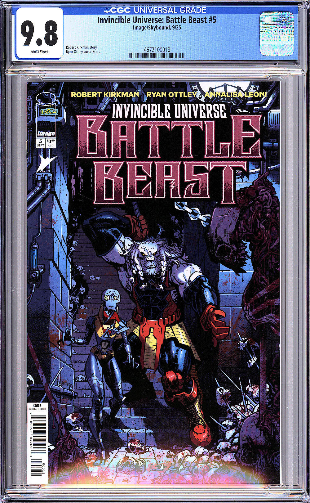 CGC 9.8 (NM/MT) copy of Invincible Universe: Battle Beast #5 - Cover A - Ryan Ottley! Official CGC page description is "WHITE Pages".